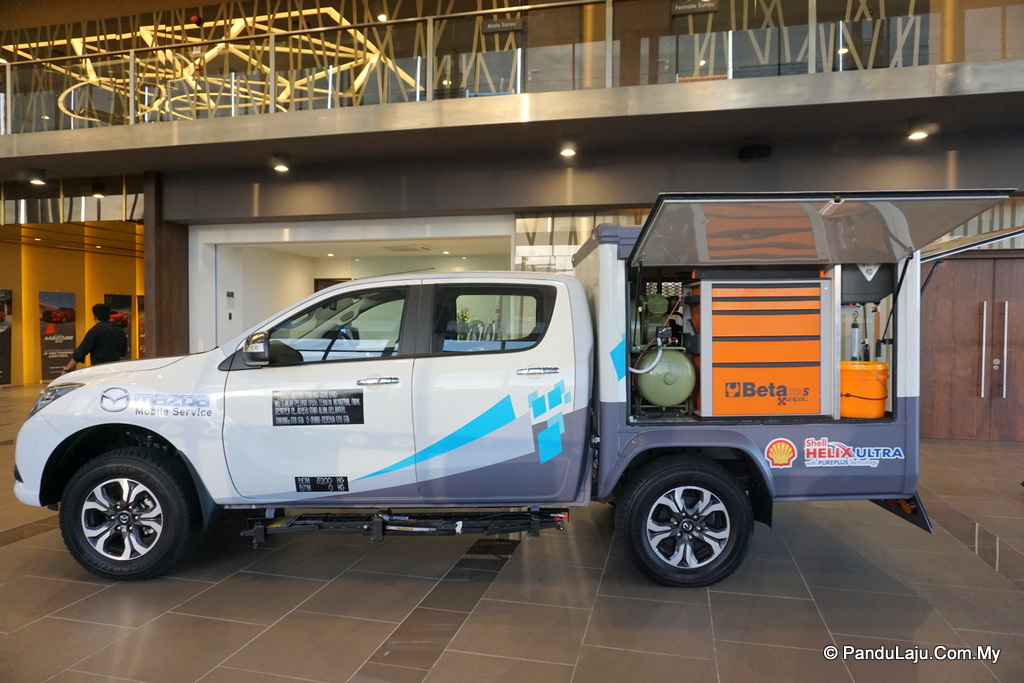 Bukan sekadar servis, trak pikap Mazda Mobile Service turut mampu membaiki kenderaan yang memerlukan bantuan.