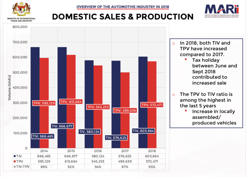 Tahun lalu, TIV dan jumlah pengeluaran kenderaan (TPV) menunjukkan peningkatan dengan mencatatkan 603,664 unit dan 572,471 unit. Bagi tahun ini, kadar TIV dan TPV dijangka meningkat kurang 1 peratus, dengan anggaran 605,898 unit (naik 0.37 peratus), TIV dan 575,603 unit (naik 0.55 peratus), TPV.
