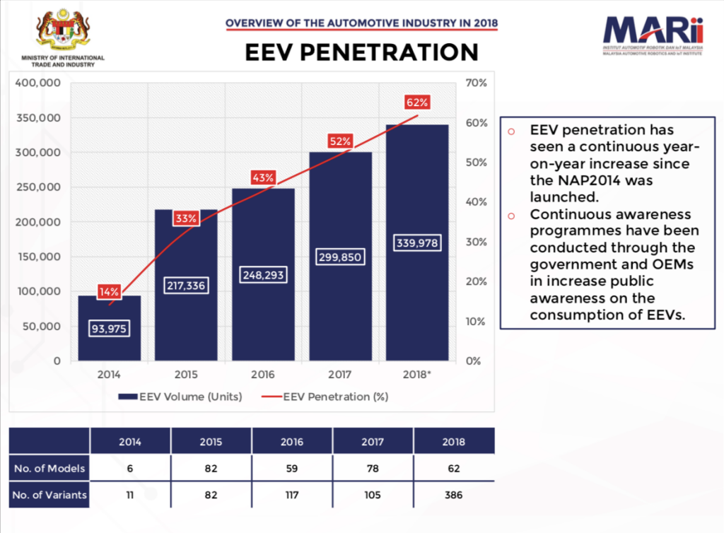 - Kadar penembusan pemilikan kenderaan EEV juga semakin tinggi, dengan 62 peratus dan dijangka mencapai 70 peratus tahun ini.