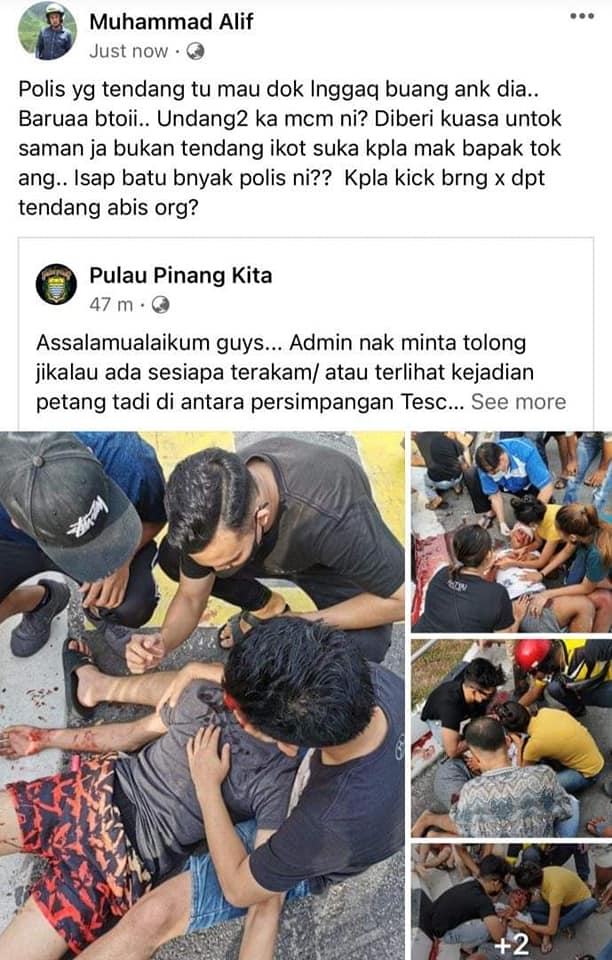 Semalam, Ketua Polis Daerah Timur Laut ACP Soffian Santong menafikan tiga anggota URB bertindak menendang motosikal dinaiki dua lelaki tersebut hingga menyebabkan kemalangan. Faktanya, anggota URB sedang membuat rondaan dan terserempak suspek penunggang dan pembonceng tanpa helmet, serta mengarahkan mereka berhenti untuk pemeriksaan.