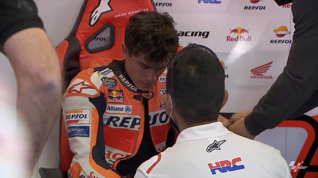 Marquez turut meluahkan kesukaran mendapat masa tepat untuk membrek, dan mencari garisan terbaik dalam trek. Malah, dalam tujuh pusingan terakhir, dia menunggang dengan cara amat aneh dan tidak mampu mengambil selekoh menyentuh siku.