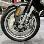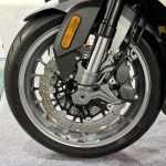 - Brek cakera kembar 310mm dengan kaliper 4-piston di depan dan cakera tunggal 220mm dengan kaliper piston tunggal. Ada Sistem Brek Anti-Kunci (ABS) dwi saluran.