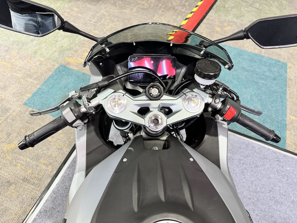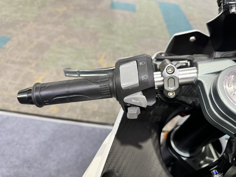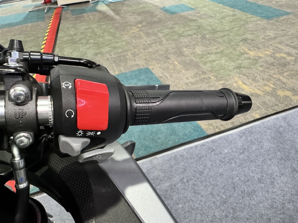 - Brek cakera kembar 310mm dengan kaliper 4-piston di depan dan cakera tunggal 220mm dengan kaliper piston tunggal. Ada Sistem Brek Anti-Kunci (ABS) dwi saluran.