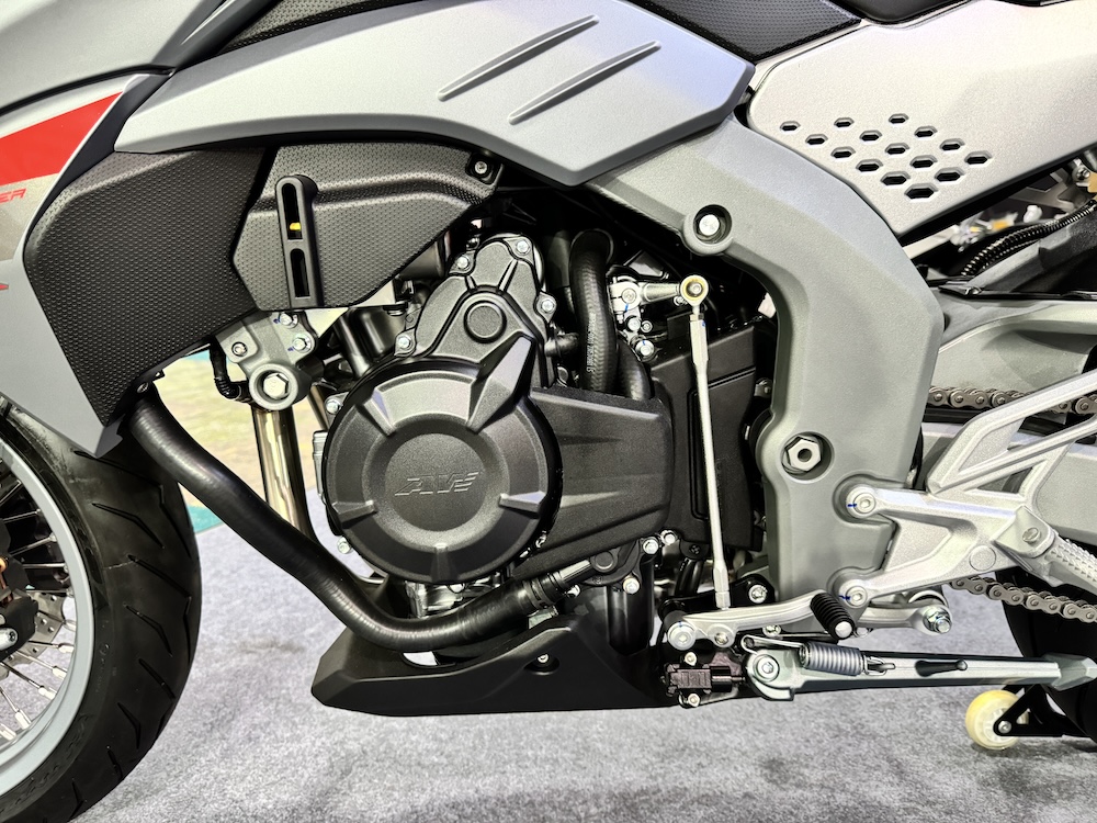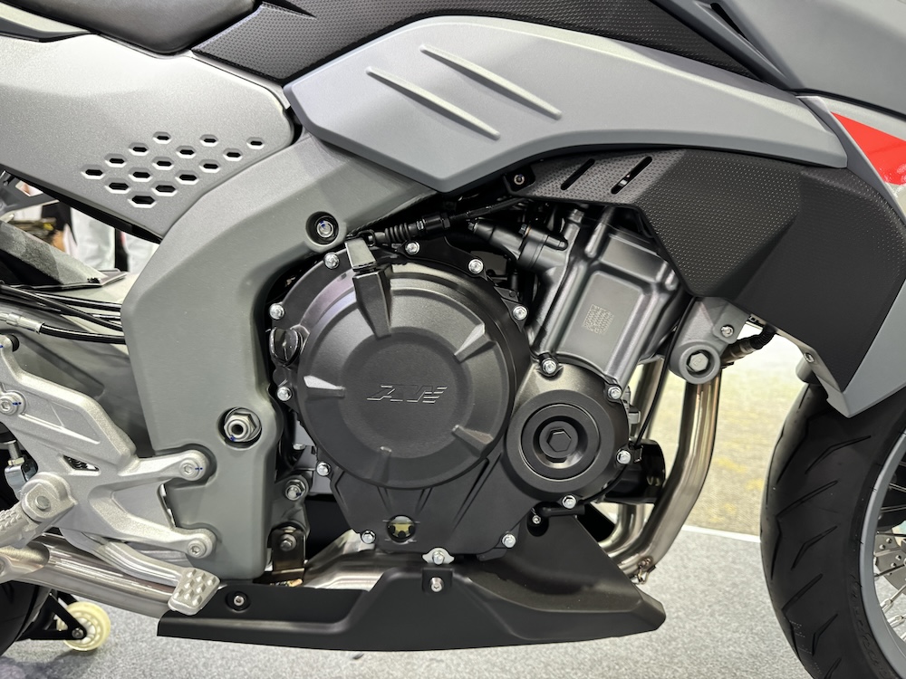 - Enjin 4-lejang dwi-silinder sebaris 471cc DOHC penyejukan cecair 8-injap dengan sistem suntikan bahan api (FI) berkuasa 47hp @ 8,500rpm dan tork 41Nm @ 7,000rpm.