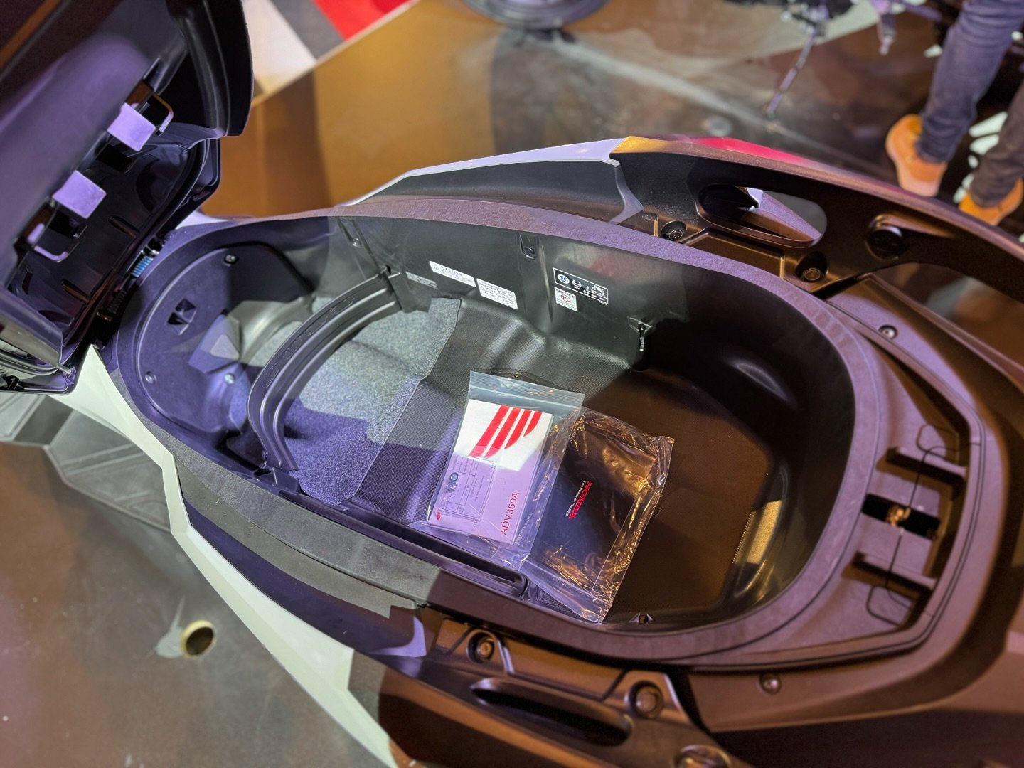 - Kompartmen bawah pelana 48 liter mampu memuatkan dua helmet muka penuh.