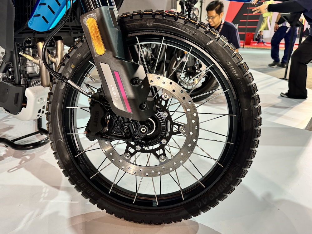 - Rim jejari 21 inci dengan tayar tiubles CST 90/90 (depan),, danrim 18 inci dengan tayar 140/70 (belakang).