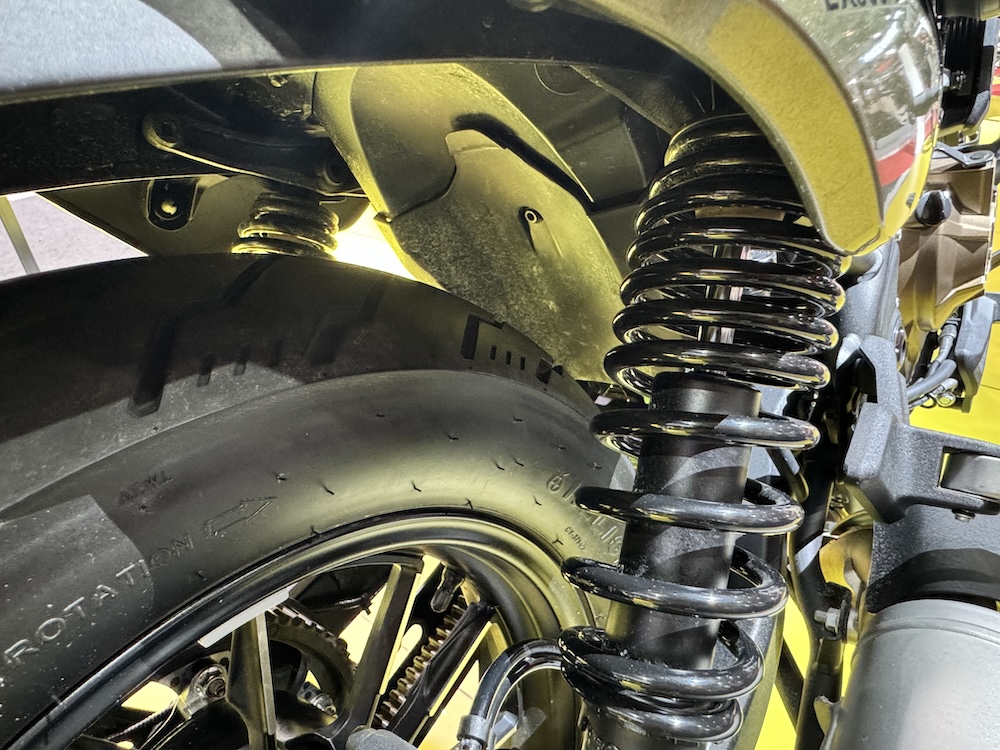 - Fork terbalik (USD) di depan, dan absorber kembar (belakang).
