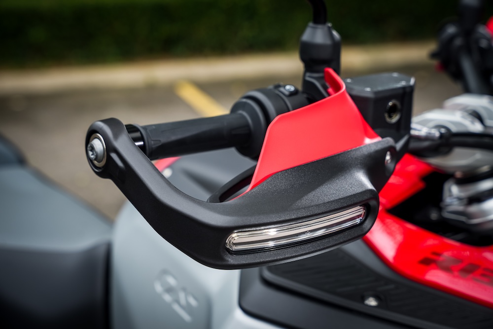 - Lampu signal belok diintegrasi ke dalam gard tangan (depan). Ada dua lampu tambahan LED untuk bahagian depan.