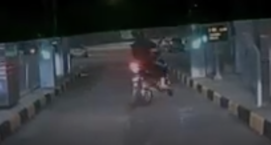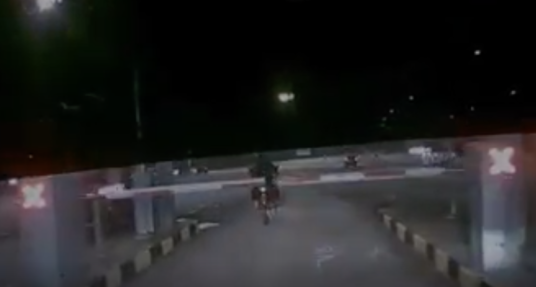 Dalam klip video itu, seorang penunggang motosikal dilihat menunggu di tepi lorong RFID kerana tidak dapat melepasi palang tol tersebut.