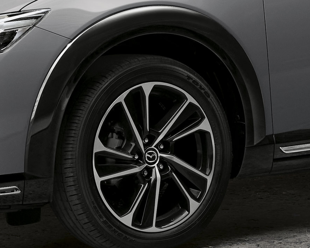 Aspek gaya diberikan tona hitam pada gril depan, cermin sisi, pelapik gerbang roda, bumbung dan rim aloi 18 inci.