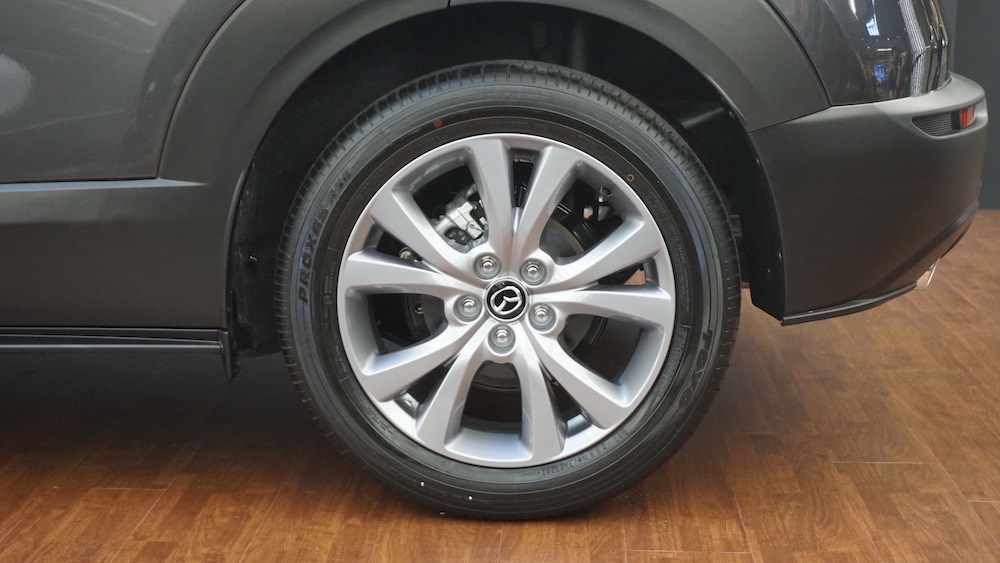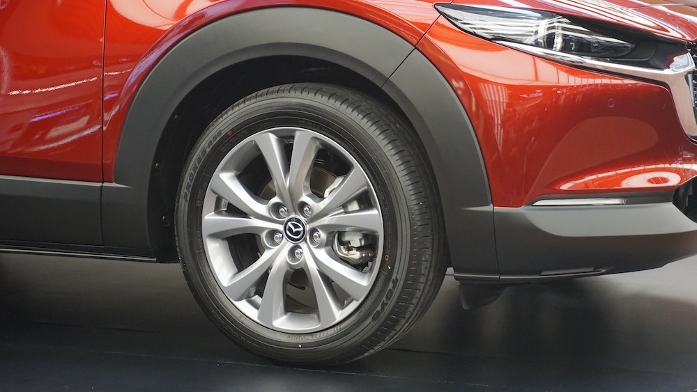 - Versi standard Mazda CX-30 (2023) CKD dengan rim aloi 16 inci, dan tayar: 215/65R, manakala tiga varian lain menggunakan rim 18 inci dengan tayar 215/55R.