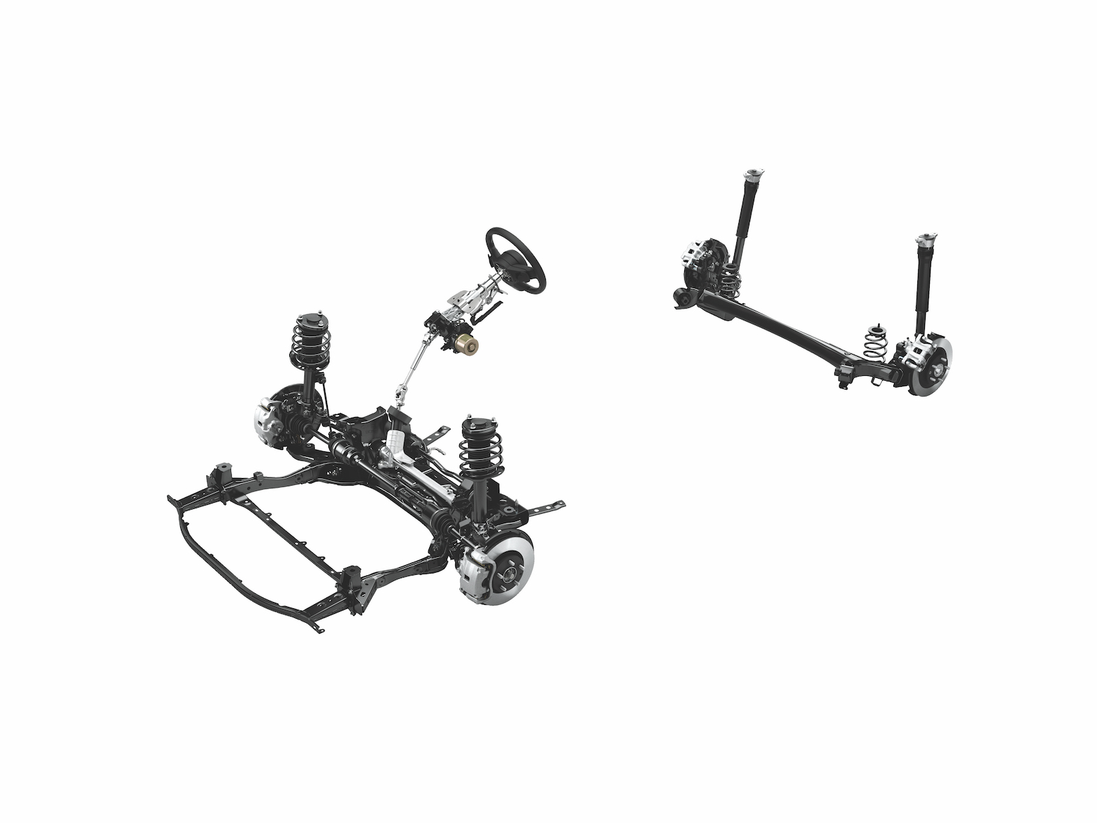 - Sistem suspensi jenis strut MacPherson (depan) dan torsian beam (belakang).