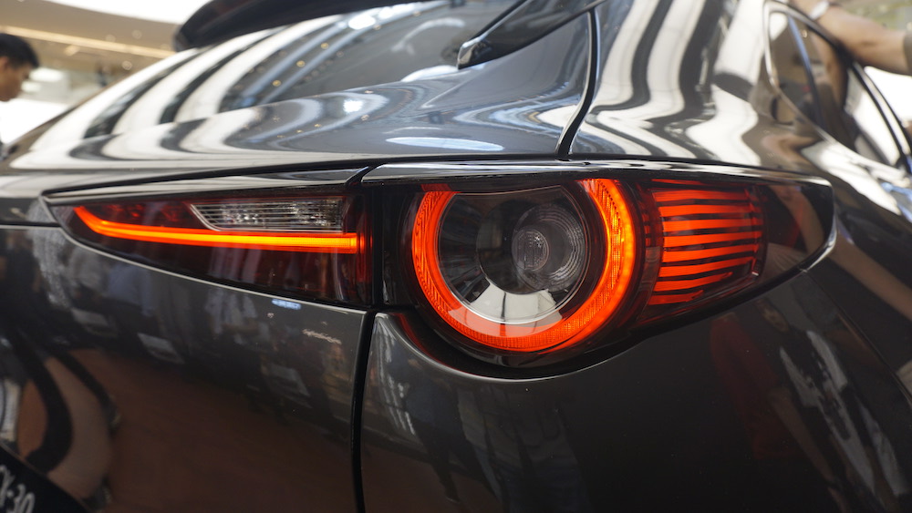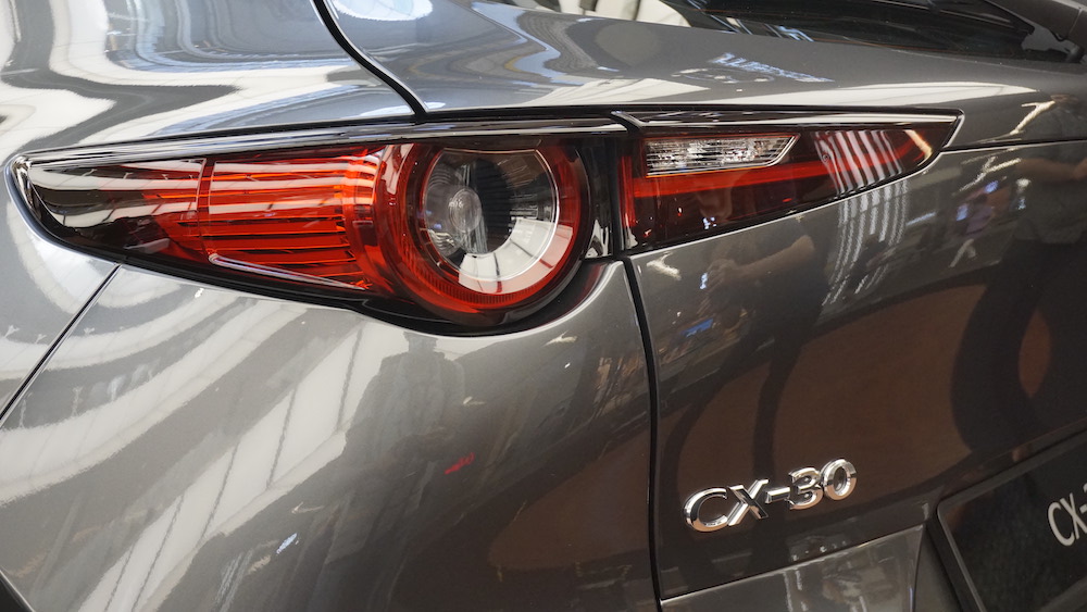 - Semua varian Mazda CX-30 (2023) CKD dilengkapi lampu utama automatik dan lampu undur LED. Tambahan lain ialah lampu kabus belakang.