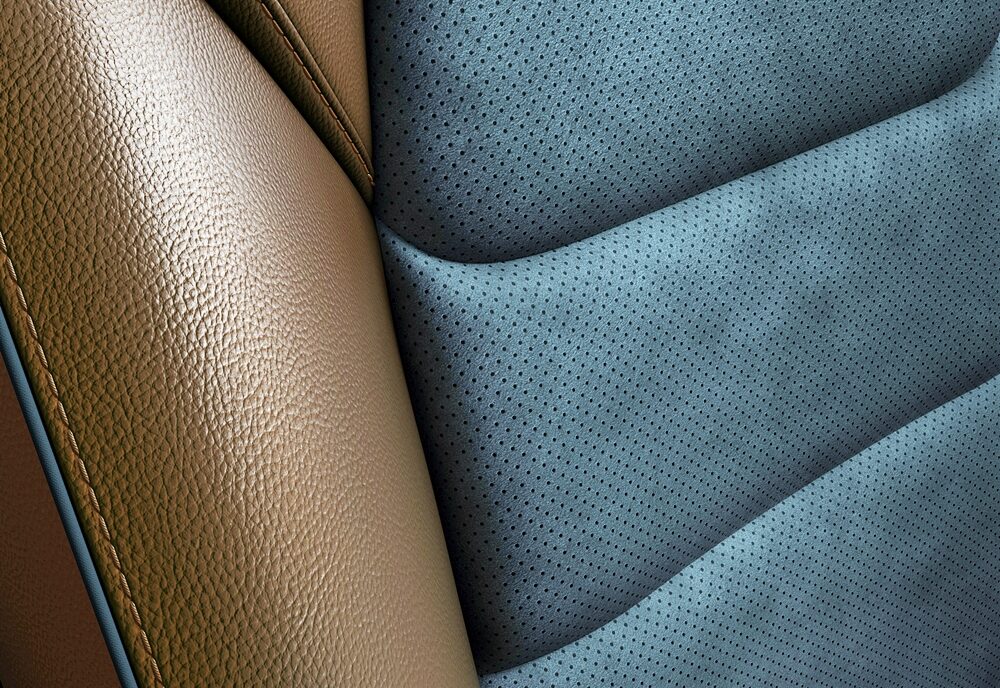 - Sulaman kelabu lembut pada kerusi, konsol tengah, perehat tangan dan pad lutut.
