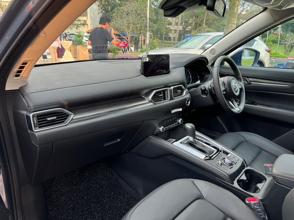- Mazda CX-5 2024 Facelift didatangkan dalam versi 5-kerusi dengan empat varian tertinggi menggunakan material kulit berserta ciri boleh laras elektronik 10-tetapan untuk pemandu), dan 6-tetapan untuk penumpang depan, termasuk dua memori tetapan.