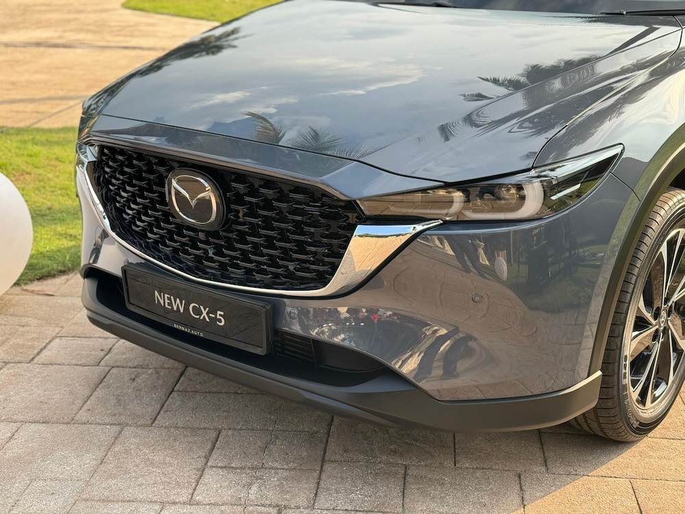 - Bahagian depan Mazda CX-5 2024 Facelift mendapat rekaan baharu berkonsepkan tiga dimensi (3D) menerusi gril lebih kemas dan bampar baharu dengan masukan udara kecil.