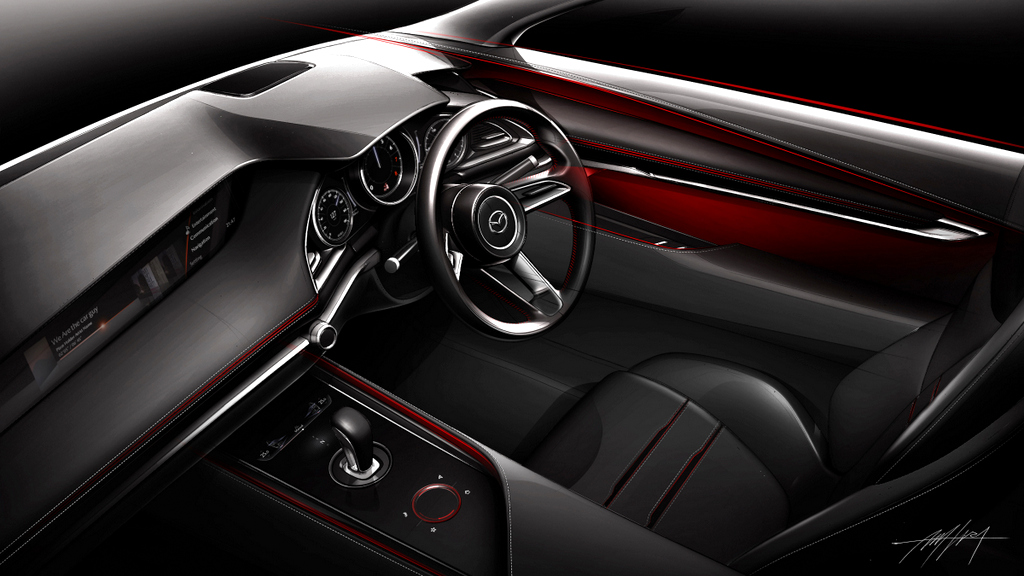 Apa yang berlainan berbanding model konsep Mazda sebelum ini, tiada lagi skrin besar terpampang di tengah papan pemuka kerana Mazda kali ini membangunkan skrin khas yang cuma dipaparkan apabila diperlukan mengikut kehendak pemandu.