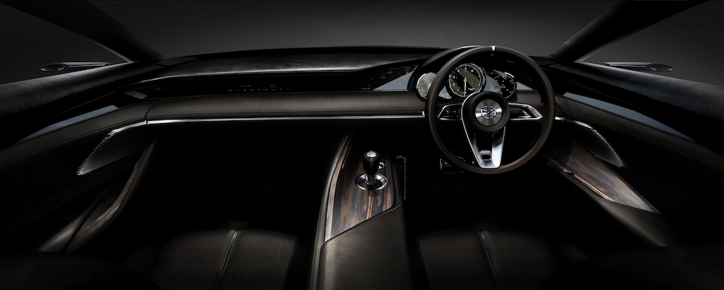Menerusi VISION COUPE, model konsep ini menampilkan metod operasi baharu dengan meminimumkan jurang antara pemandu dan kereta secara intuitif. Kokpit direka simetri dengan pusat stereng di tengah dan segala lain di kiri dan kanan. Ini membuatkan pemandu merasai pengalaman memandu dalam posisi paksi pusat sepanjang masa. Pemandu juga dapat mencapai akses segera dengan sentuhan pantas pada konsol pusat, sama seperti si penunggang merentap tali kekang kudanya. Kini, manusia dan mesin, bagi Mazda, bukan lagi entiti yang terpisah.