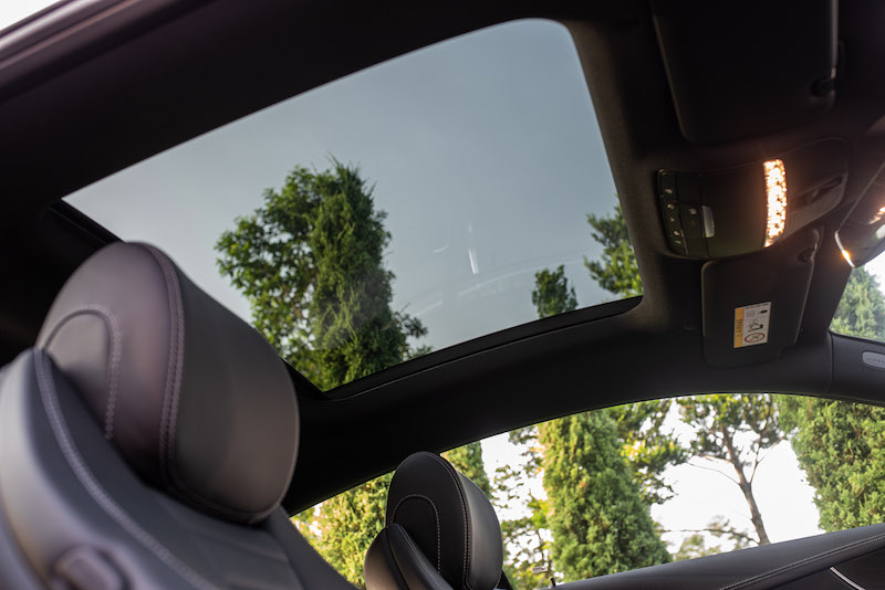 - Bumbung suria panoramik boleh buka dan ruang kabin hadir bersama latar pencahayaan 64 jenis warna dengan konsep tiga zon. Tambahan lain ialah sistem bunyi Burmester.