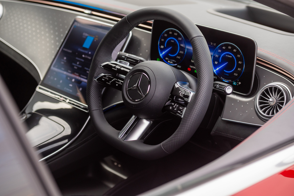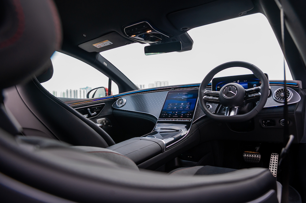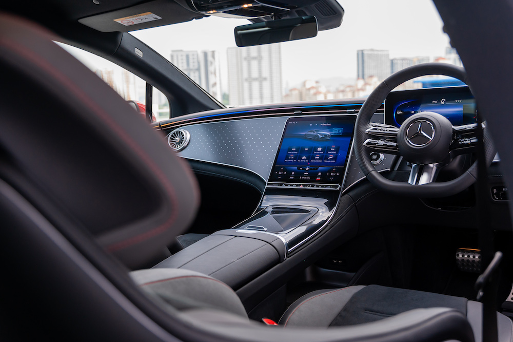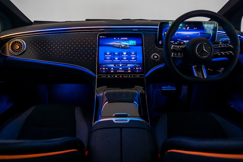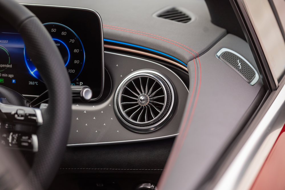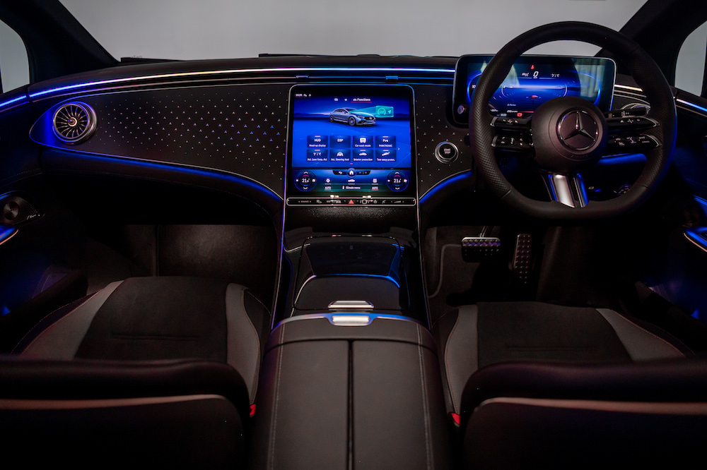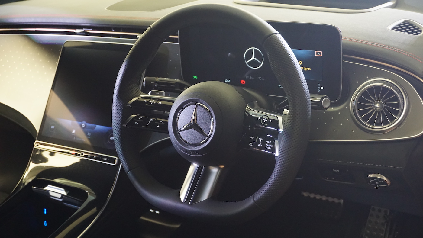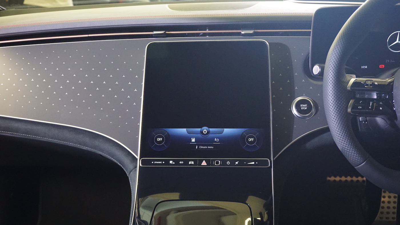 - Dilengkapi pakej Display merangkumi sistem multimedia MBUX, pengimbas cap jari, paparan pemandu dan paparan OLED (tengah) termasuk paparan dongak (HUD).