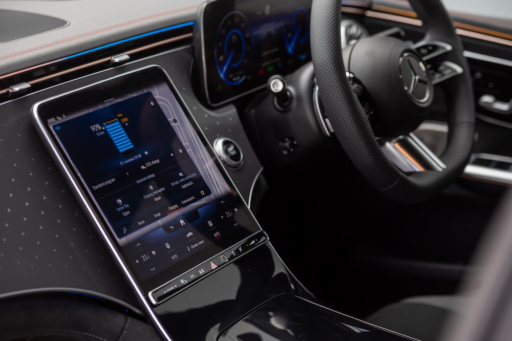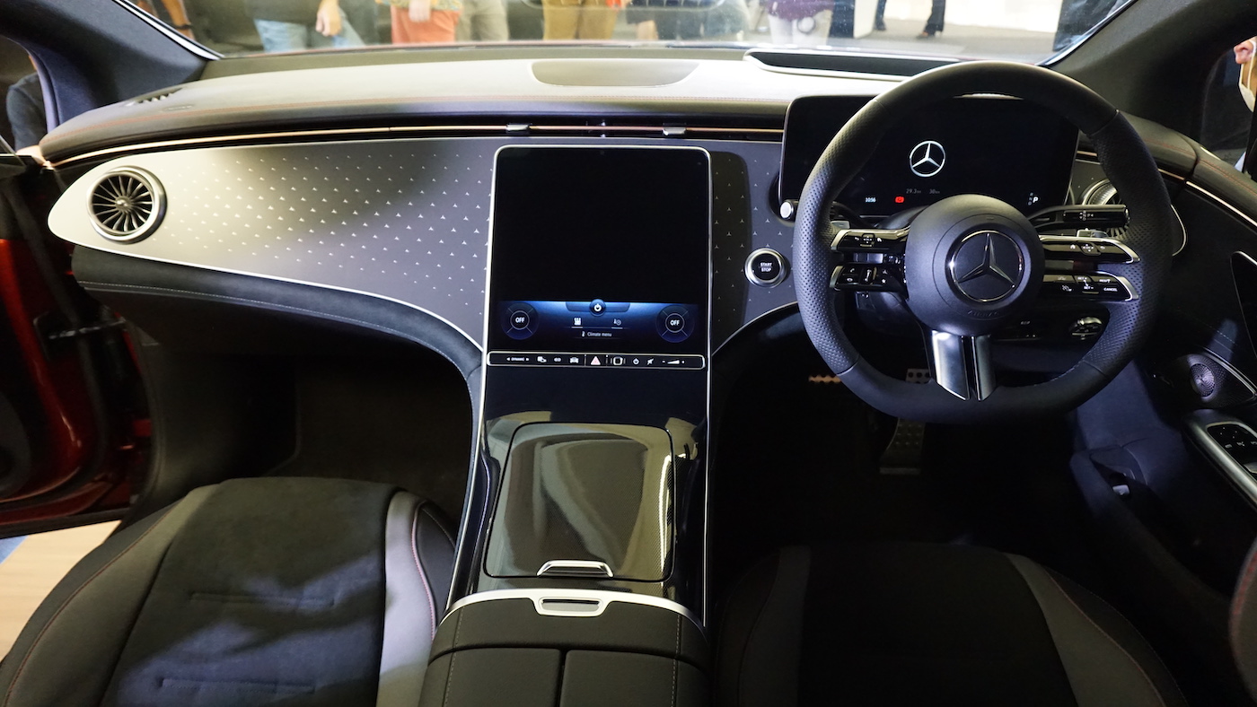 • Dilengkapi pakej Display merangkumi sistem multimedia MBUX, pengimbas cap jari, paparan pemandu dan paparan OLED (tengah) termasuk paparan dongak (HUD).