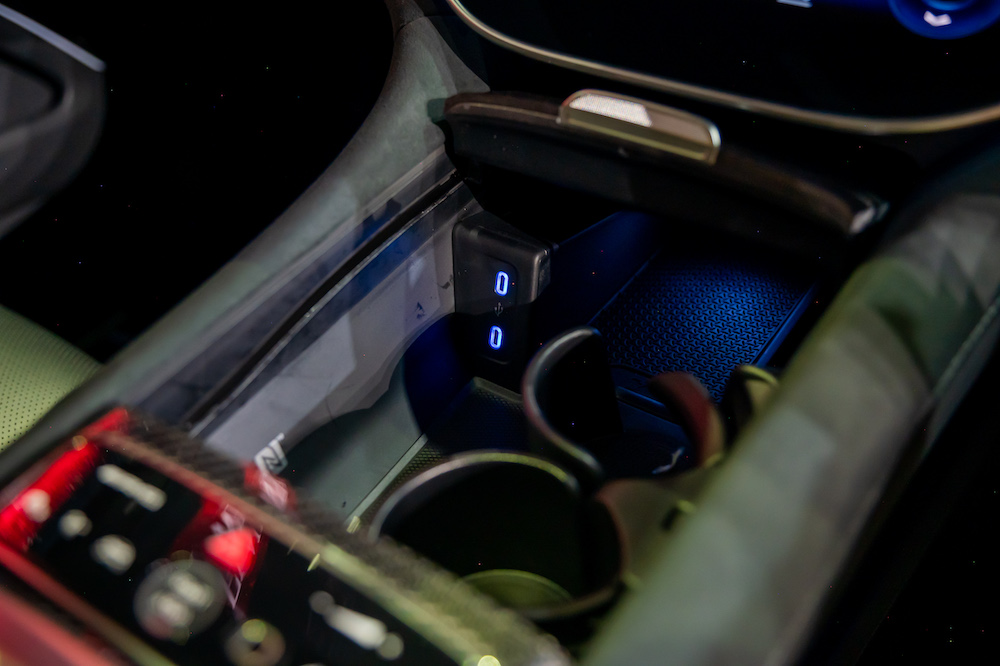 - Pengecasan tanpa wayar untuk telefon pintar. Sistem multimedia MBUX termasuk navigasi, sambungan Apple CarPlay dan Android Auto.