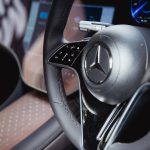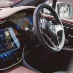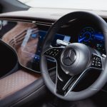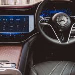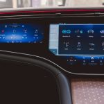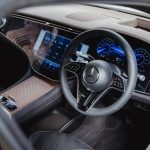Konsol depan terhidang unit infotainment MBUX Hyperscreen yang disepadu panel instrumen dalam satu paparan skrin lebar tunggal. Ini disempurnakan dengan paparan dongak (HUD) realiti terimbuh (AR) MBUX AR untuk bantuan pemanduan dan navigasi 3D.