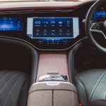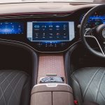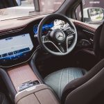 Selain ruang dalaman luas dan mewah untuk tujuh penumpang dengan keselesaan dan ciri konektiviti termaju, ruang kabin SUV EV ini diserikan dengan kemasan kayu magnolia cokelat lelubang, aksen aluminium Mercedes-Benz dan upholsteri kulit nappa hitam dam cokelat balao.