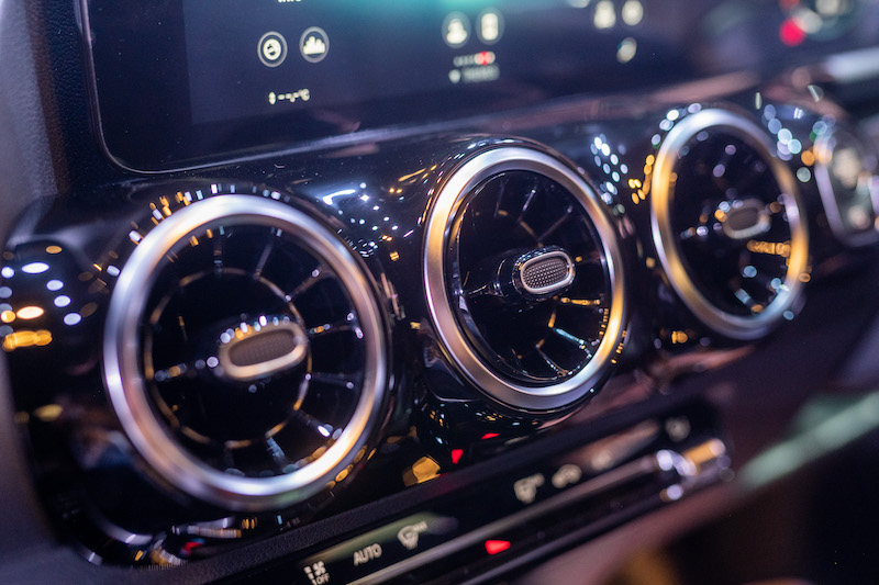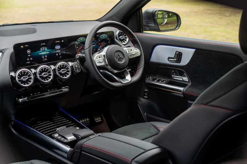 - Kabin menunjukkan perbezaan dengan GLA 200 menggunakan kerusi jenis Comfort manakala varian AMG dipasang kerusi Sport. Kerusi pemandu kedua-dua siri GLA CKD boleh diselaras secara elektrik dengan fungsi memori.