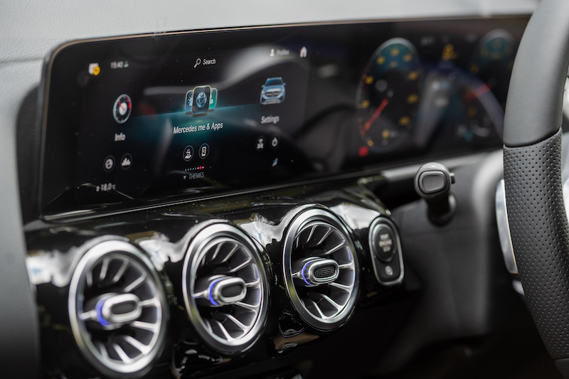 - Kedua-dua varian ada sambungan Android Auto dan AppleCar Play, modul komunikasi (LTE) untuk fungsi servis konektiviti Mercedes me, maklumat trafik semasa, pad sesentuh tanpa kontroler dan sistem panggilan kecemasan Mercedes-Benz.
