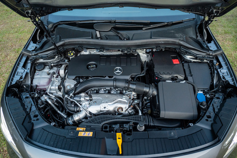 - GLA 250 dipacu enjin 4-silinder 2.0 liter turbo (1,991cc), menawarkan kuasa 224hp pada 5,500rpm dan tork 350Nm @ 1,500-4,500rpm. Kotak gear ialah 8-kelajuan automatik DCT. Masa pecutan ke 100kmj ialah 6.9 saat dan kelajuan maksimum pula 240kmj.