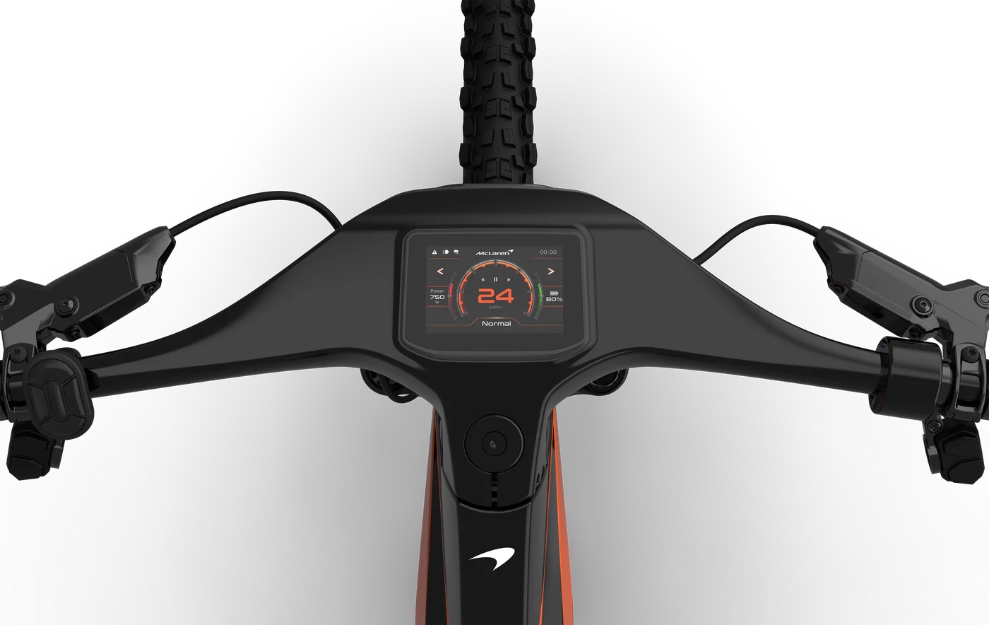 Sama seperti kereta McLaren, basikal gunung elektrik ini mempunyai mod kuasa yang boleh dipilih menerusi skrin digital pada hendal.