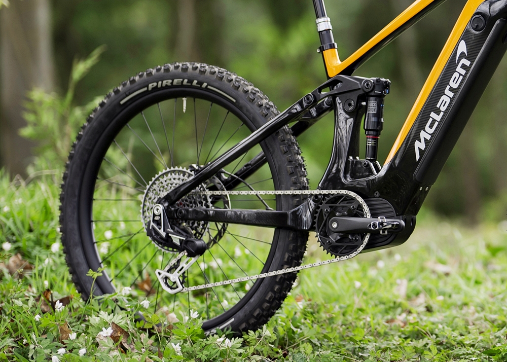 Basikal gunung elektrik ini menggunakan binaan gentian karbon yang sinonim dengan model McLaren.Malah motor basikal elektrik ini juga meningkatkan lagi nisbah kuasa kepada berat yang menjadi ciri dalam setiap pembangunan supercar McLaren.