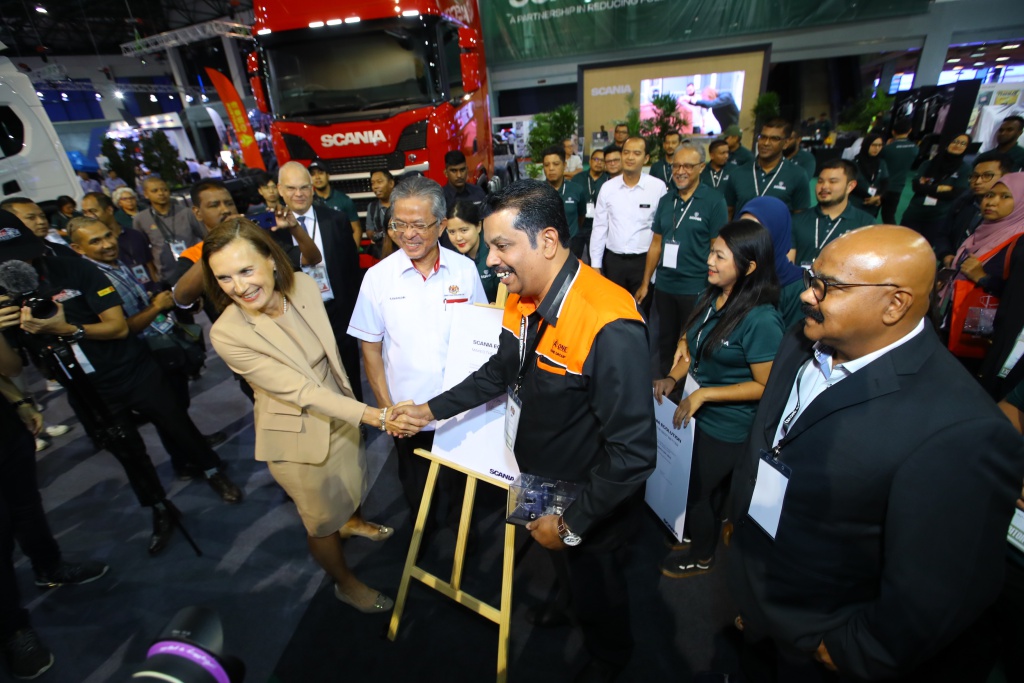 Majlis tandatangan itu diwakili Pengarah Urusan Scania Asia Tenggara, Marie Sjödin Enström dan Pengarah Urusan Aone Logistics Sdn Bhd, S Palani.