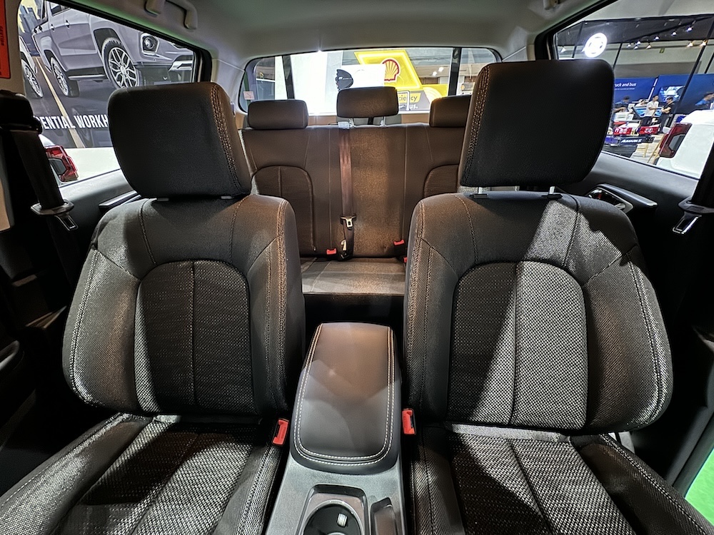 - Tempat duduk 5-kerusi dibalut material fabrik, dan boleh laras manual.