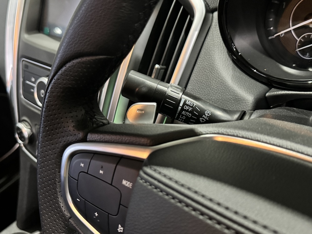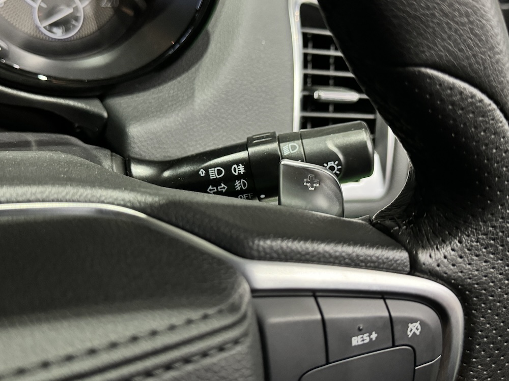 - Stereng kulit dengan butang kawalan audio, Bluetooth dan Kawal Jelajah.