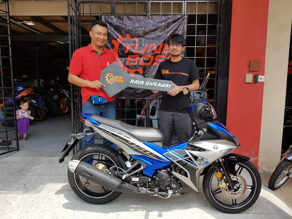 PESERTA dari Ipoh, Perak, Mohd Fairus Abd Rahman, 36, berjaya membawa pulang Yamaha Y15ZR dengan mengalahkan ratusan peserta lain dalam Cabutan Bertuah TuneBoss 2018 . Acara tahunan FSR Technology itu dianjurkan khas buat pelanggan TuneBoss ECU, tidak seperti sebelumnya yang dibuka kepada orang ramai.