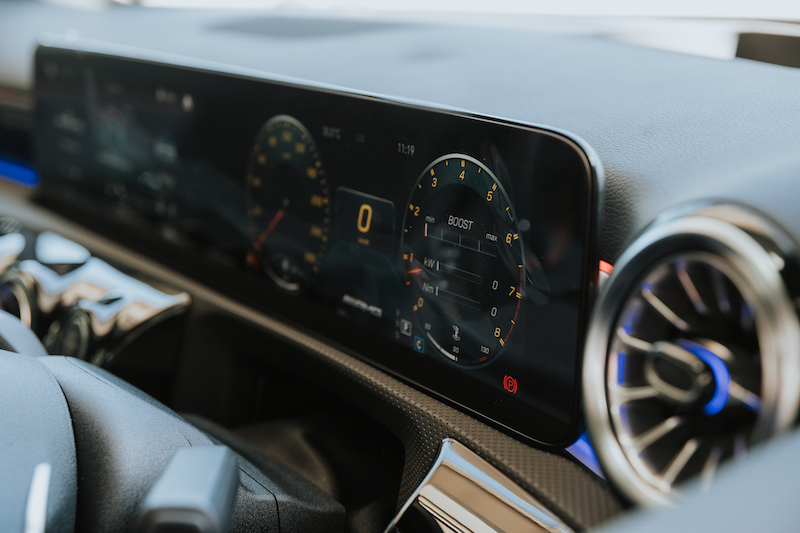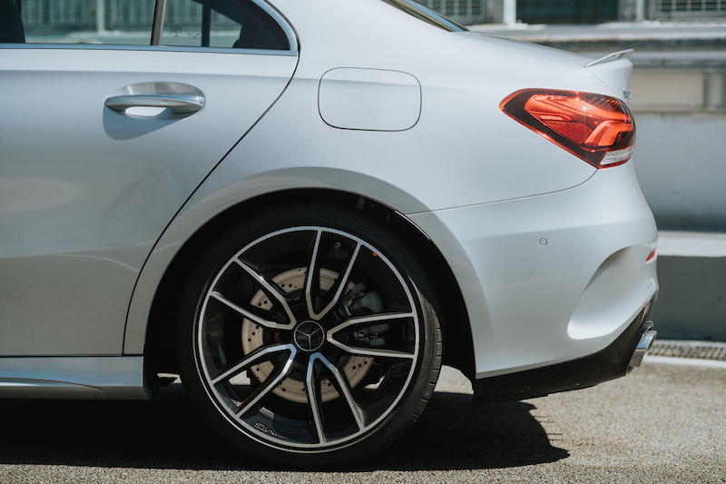 - Rim aloi ringan AMG lima-jejari kembar 19-inci, manakala gerbang roda kini lebih lebar berbanding model A-Class lain.