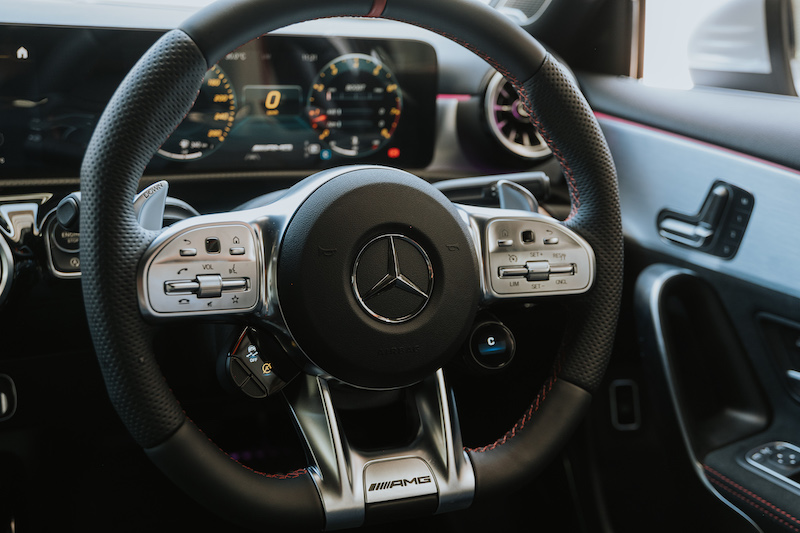 - Stereng rata AMG Performance dengan balutan kulit Nappa.
