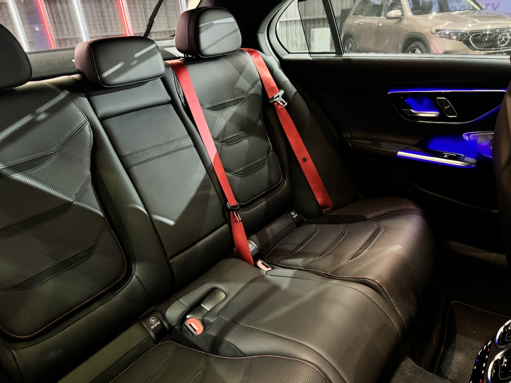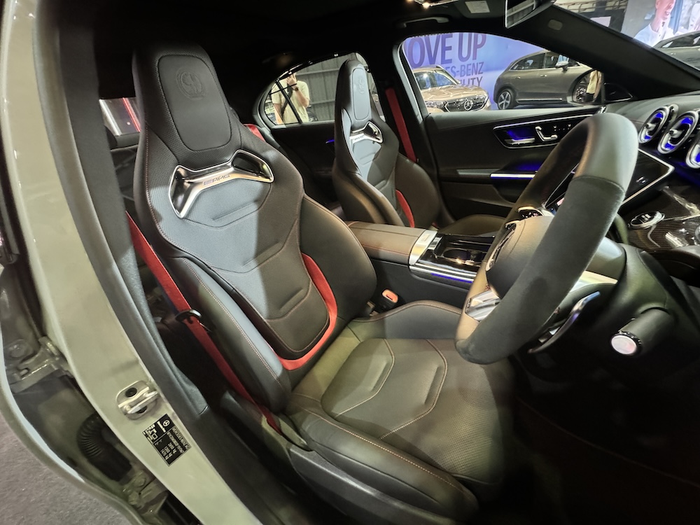 - Kerusi AMG Performance generasi baharu, berasaskan kulit Nappa hitam dengan sulaman benang merah.