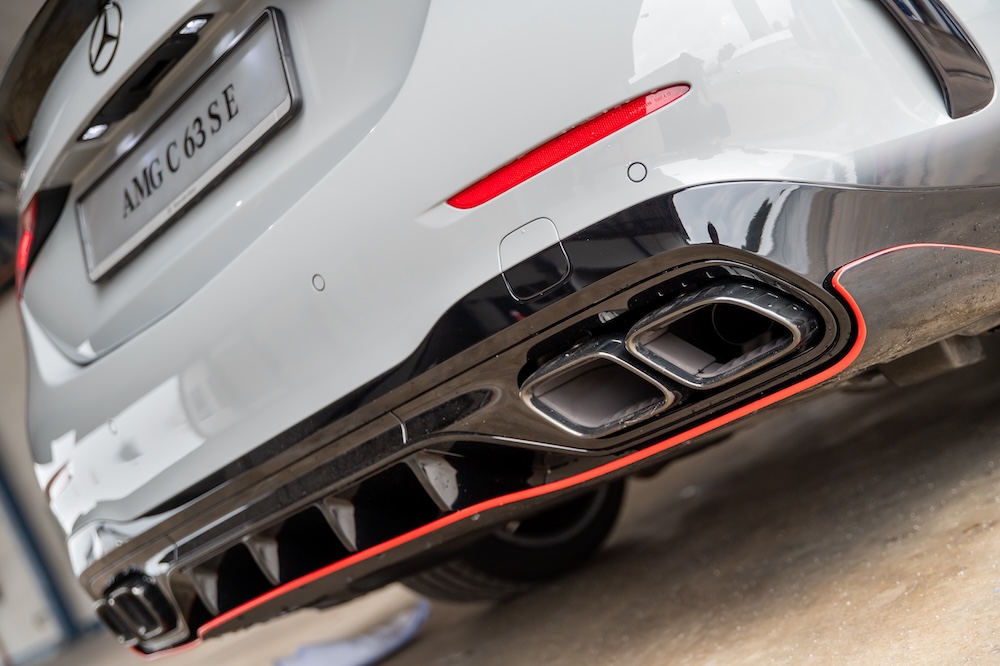 - Ada pakej kit badan AMG Aerodynamics Package berwarna hitam. Tambahan lain ialah pakej AMG Night Package.