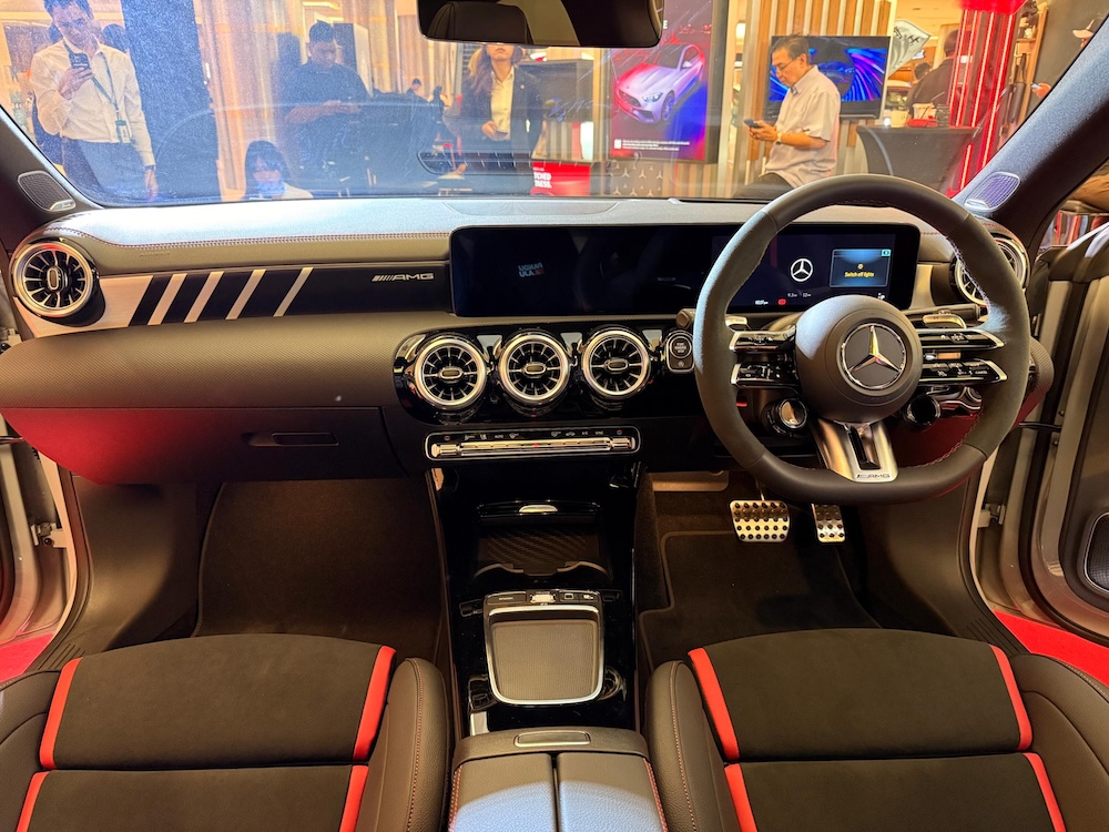 Ruang kabin dilengkapi kluster instrumen digital 12.3 inci, unit infotainmen 11.9 inci dengan sistem MBUX terkini, lampu ambien 64 warna dan sistem audio premium Burmester® 3D.