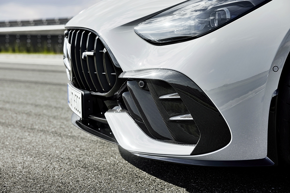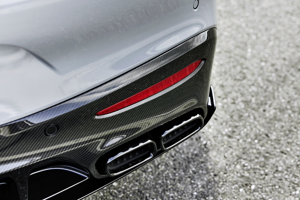 Perkakasan AMG Exterior Carbon Fibre pada AMG GT 63 PRO menyerlahkan penampilan dengan splitter depan, jaluran sisi, difuser dan sayap belakang gentian karbon mutu tinggi.