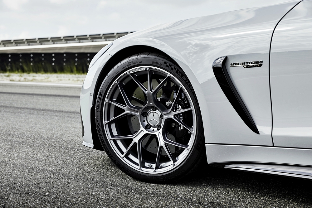 Rim tempa AMG saiz 21 inci menggunakan warna Himalaya grey dan untuk pasaran United Kingdom (UK) dipadan bersama tayar Michelin Pilot Sport Cup 2R Cup saiz 295/30 ZR di depan dan 305/30 ZR di belakang.