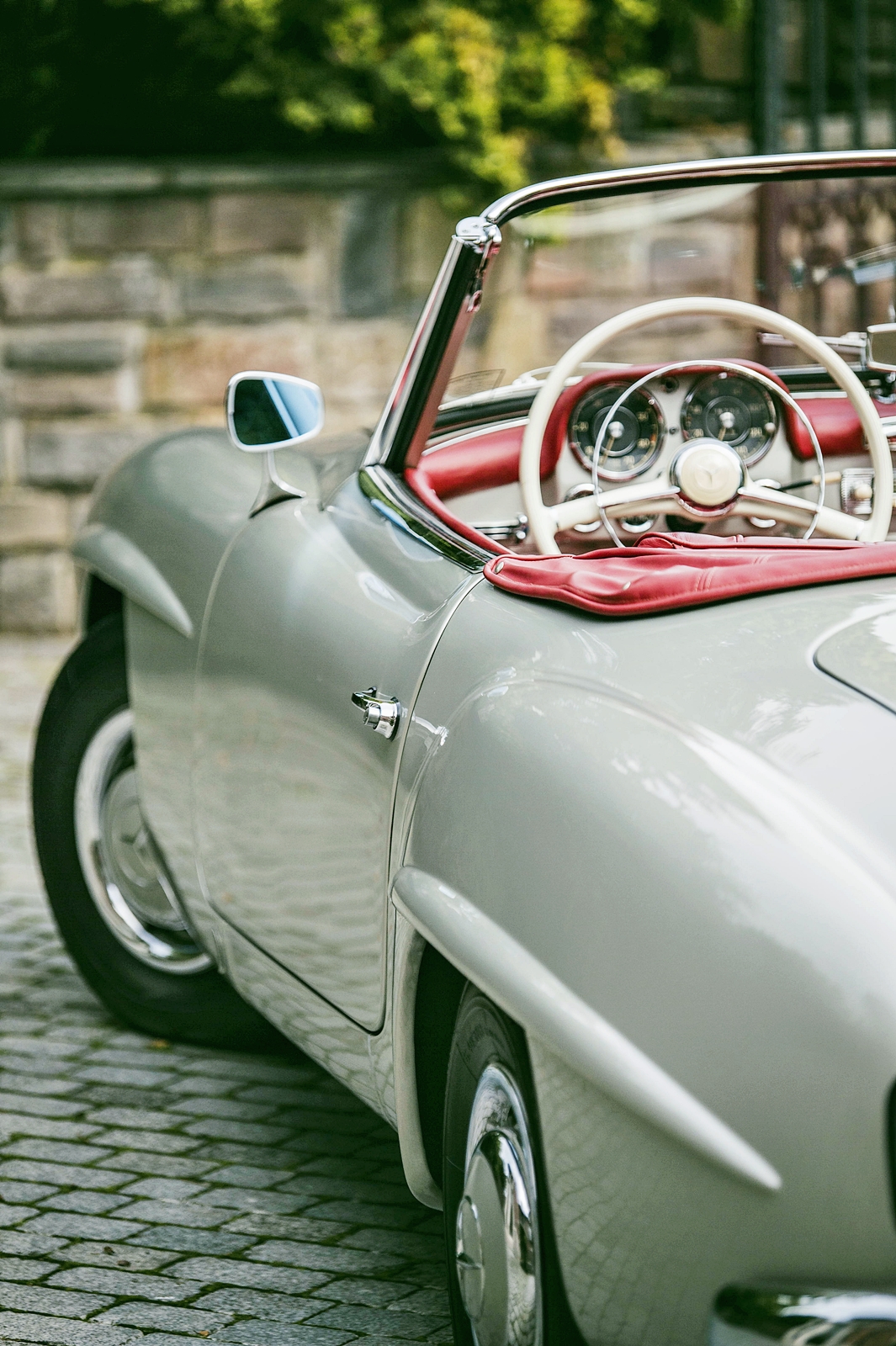 INI antara model menarik yang dibuka untuk bidaan, Mercedes-Benz 190SL Roadster (1955) dan walaupun sudah berusia lebih enam dekad, model ini masih kelihatan anggun. Inilah contoh rekabentuk yang dikatakan malar segar atau tak lapuk dek masa.