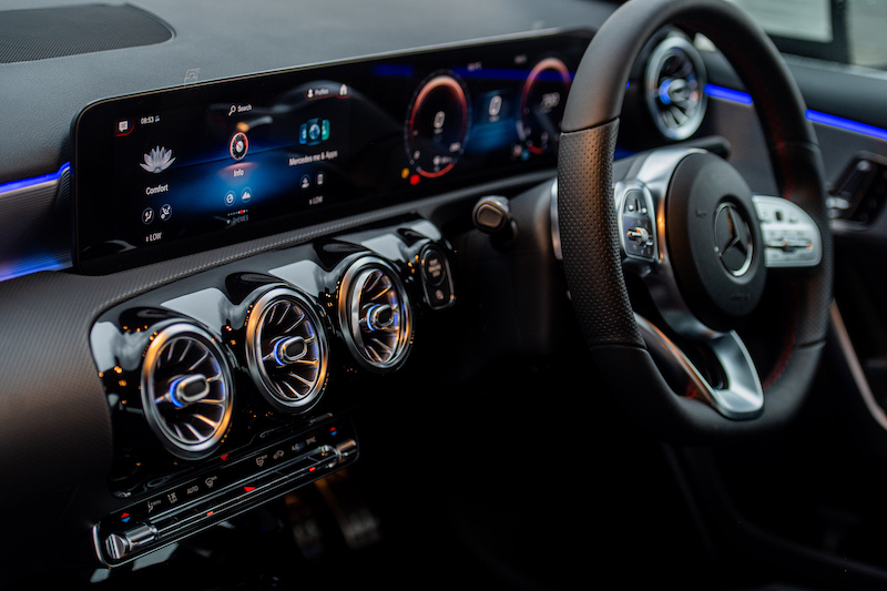 - Kabin A-Class 200 dan 250 turut menerima sistem infotainmen Mercedes-Benz User Experience (MBUX) dengan paparan digital menerusi dua unit skrin 12.3 inci, termasuk instrumen paparan instrumen utama.