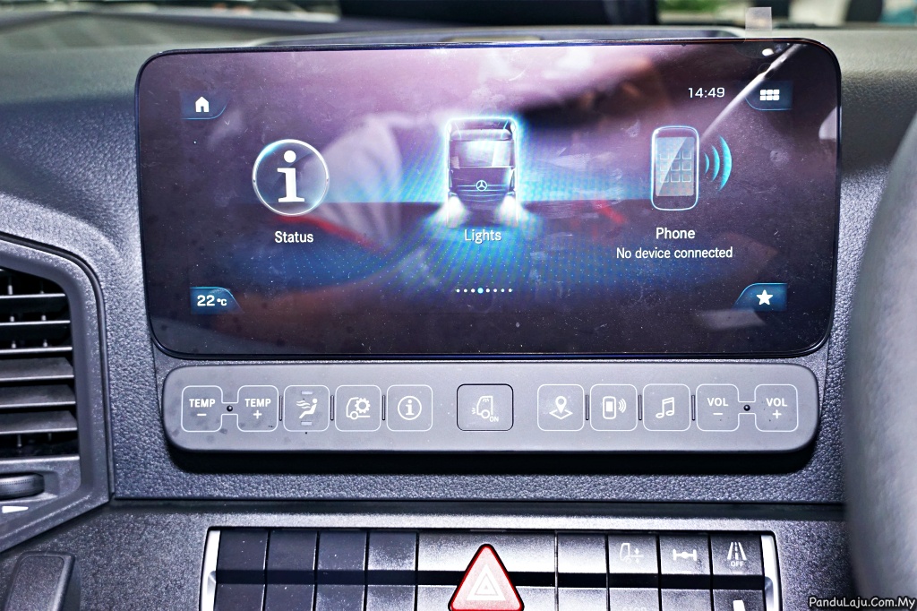Kerusi pemandu boleh laras menyediakan sisi ergonomik dan sudut pandan ideal yang luas di depan. Ciri keselamatan tidak dilupakan, terdiri daripada sistem bantuan brek keselamatan termaju Bantuan Brek Aktif 5 yang boleh mengesan pejalan kaki dan objek.