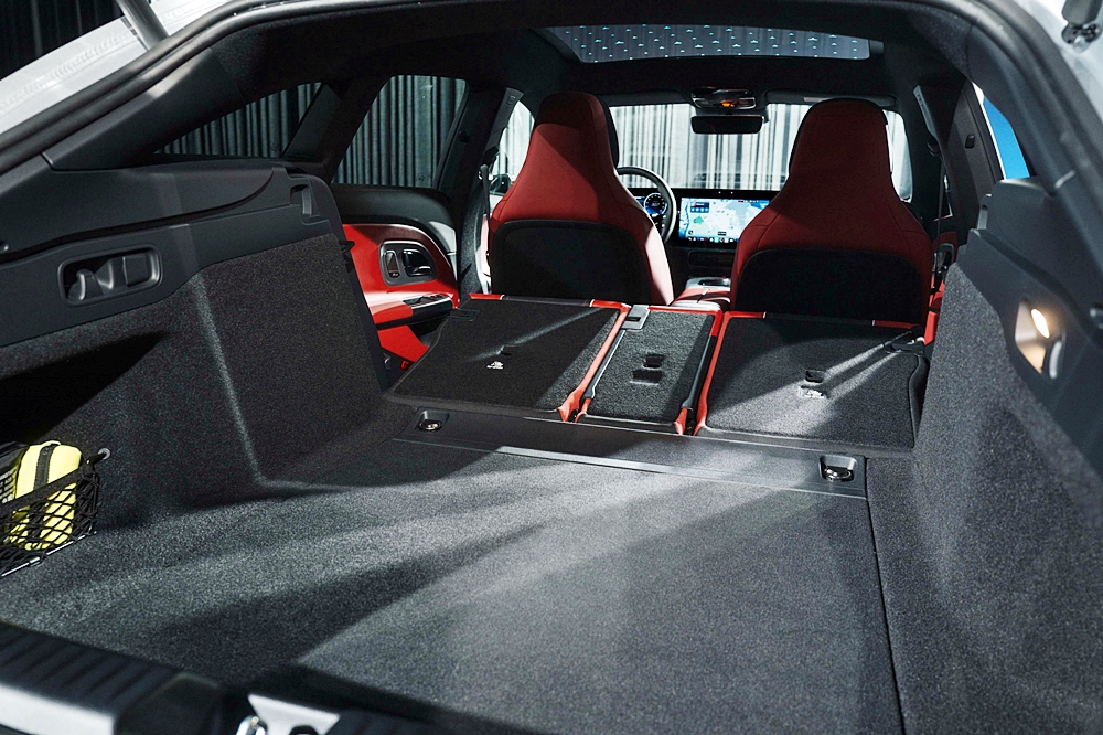 Ruang but utama menawarkan kapasiti dari 455 hingga 1,290 liter, manakala ruang frunk di bawah bonet depan memberikan tambahan 101 liter.