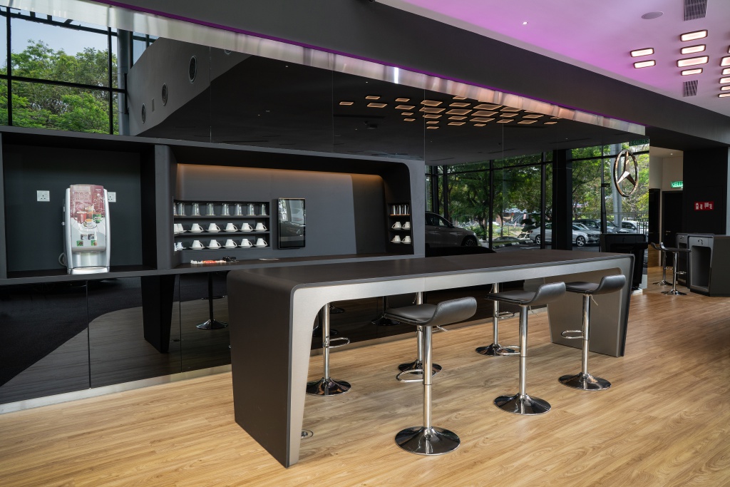 Ruang santai dan riadah keluarga, termasuk kafe turut disediakan sepanjang menunggu kereta disenggara. Bilik pameran konsep baharu ini turut menjadikan keseluruhan kawasan premis sebagai ruang layanan pelanggan tanpa menumpukan kepada satu-satu tempat.