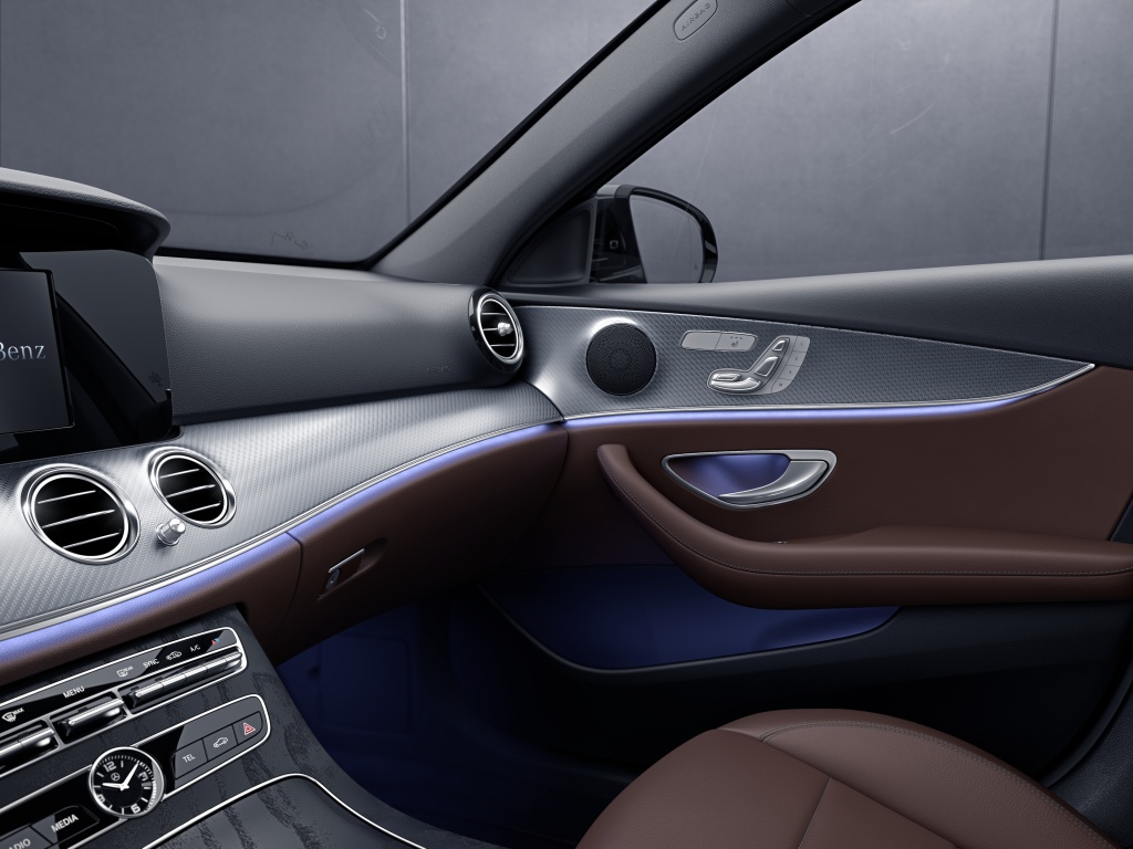 - Status elegan E 300 Exclusive Line diperkuat dengan gril radiator klasik Mercedes-Benz dan lencana bintang tiga ikonik atas bonet yang membezakan model ini dengan E 200 Sportstyle Avantgarde dan E 350 AMG Line.